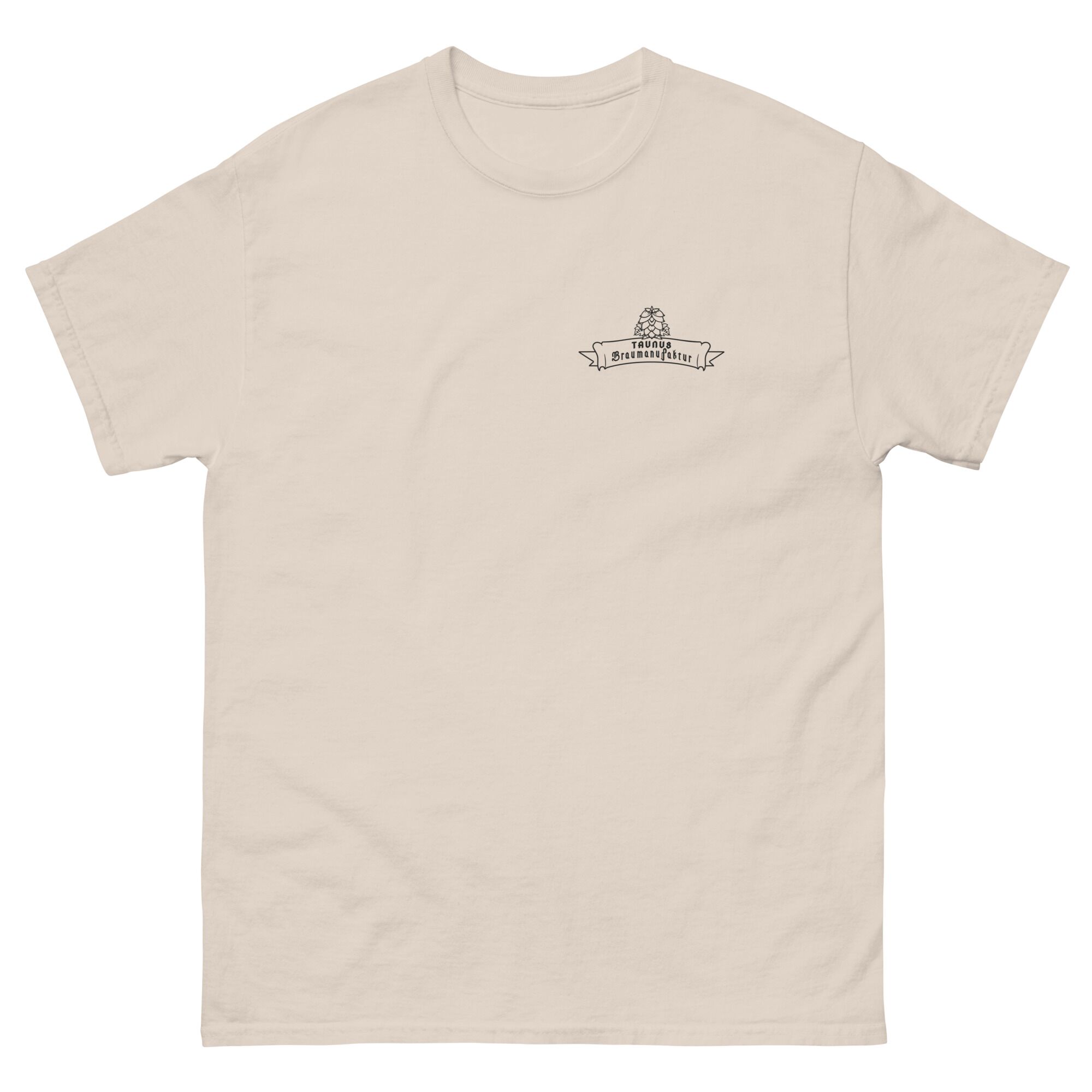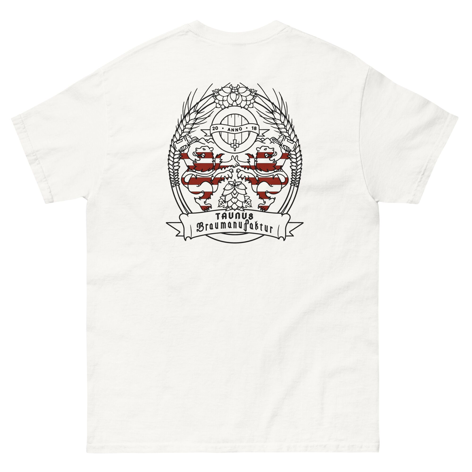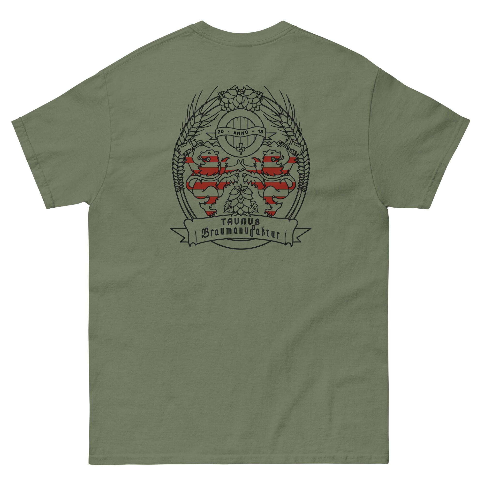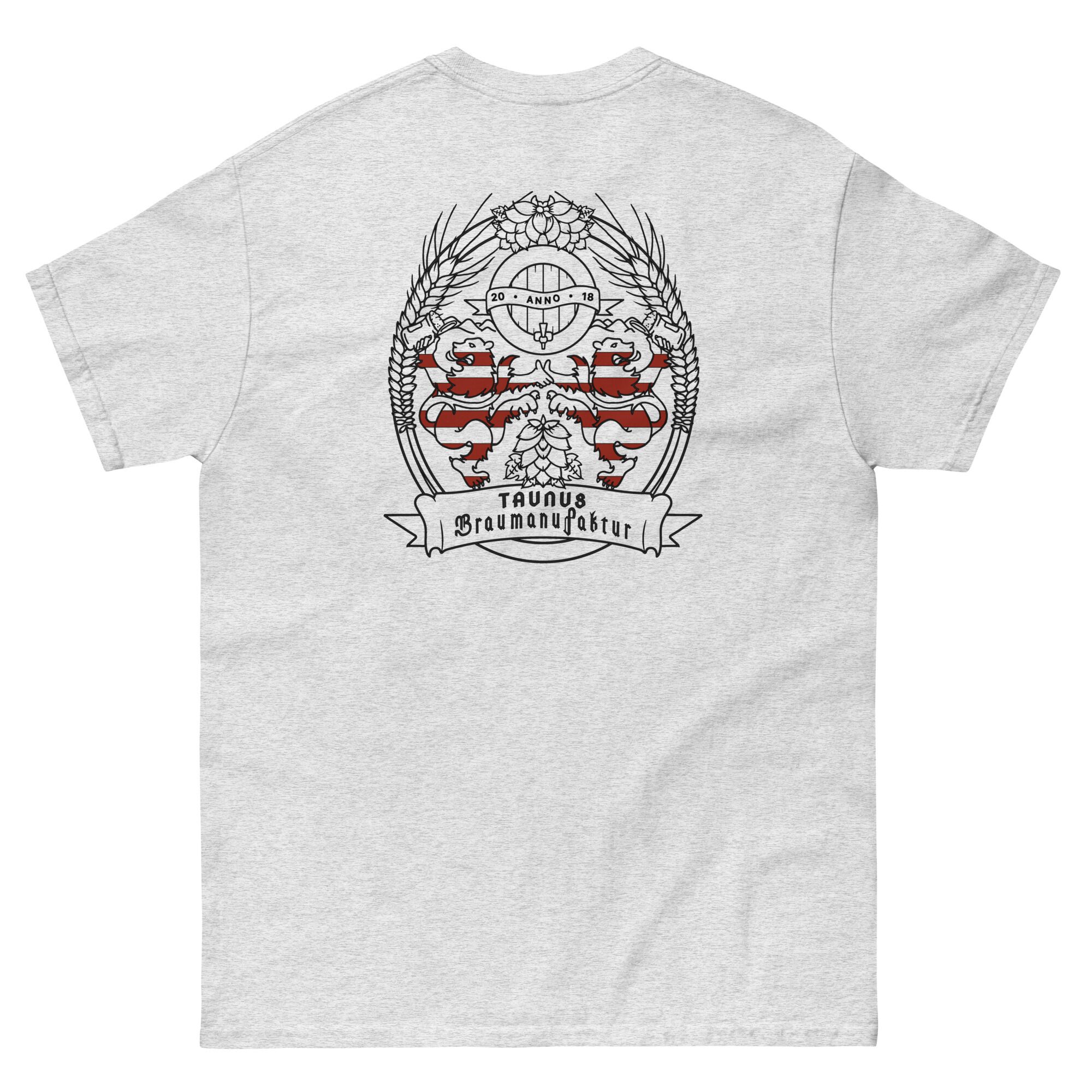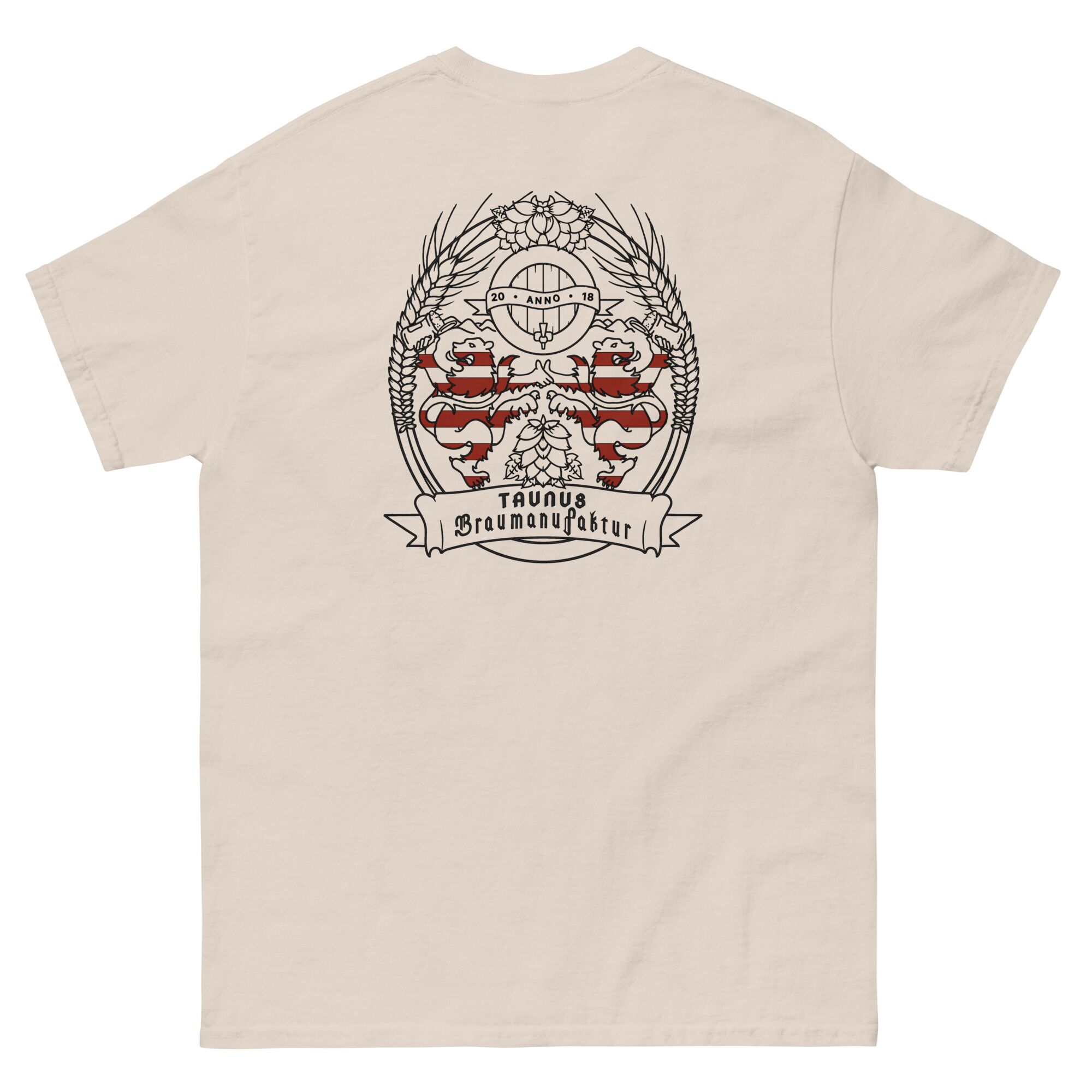 Das Unisex T-Shirt mit dem Taunus Braumanufaktur Banderolen-Logo auf der Brust und dem kraftvollen Wappen-Logo auf dem Rücken setzt du ein starkes Statement für Regionalität und echten Geschmack. Ob zur Jeans, Shorts oder unter der Jacke, dieses Shirt ist dein lässiger Begleiter für Alltag, Fest oder deinem nächsten Besuch in der Güterhalle.